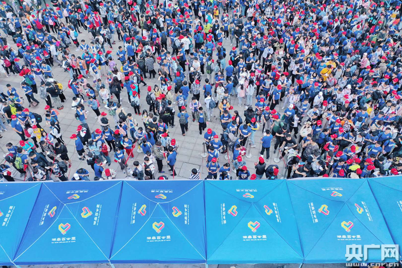 早上七點(diǎn),活動(dòng)起點(diǎn)長(zhǎng)沙中盈廣場(chǎng)人頭攢動(dòng)。湖南日?qǐng)?bào)供圖