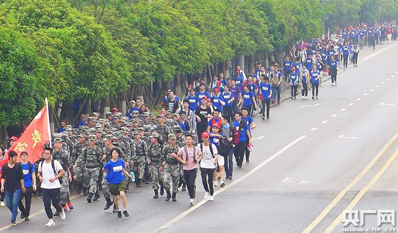 央廣網(wǎng)長(zhǎng)沙4月20日消息(記者姜文婧 通訊員萬(wàn)絲柳)“我們都是追夢(mèng)人,千山萬(wàn)水奔向天地跑道!”晨光剛剛照拂湘江兩岸,朝氣蓬勃的歌聲就在長(zhǎng)沙中盈廣場(chǎng)上響起,一萬(wàn)多名健走愛好者在這里集合。7時(shí)許,由共青團(tuán)湖南省委、湖南省體育局、湖南日?qǐng)?bào)社主辦,多家高校、社會(huì)組織、企業(yè)聯(lián)合承辦的“2019湖南(春季)百公里”健走活動(dòng)宣布正式開始,由19000余人組成的健走隊(duì)伍浩浩蕩蕩,他們將沿著湘江徒步穿越長(zhǎng)沙、湘潭、株洲三個(gè)城市,預(yù)計(jì)整個(gè)行程需要兩天時(shí)間。