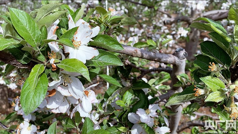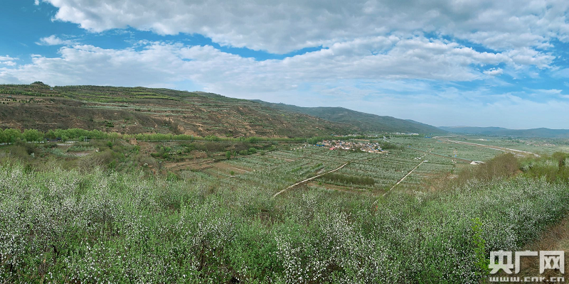 四月,甘肅省隴南市禮縣分布在西漢水沿岸的60萬(wàn)畝蘋果花開(央廣見習(xí)記者 王琪瑤 攝)