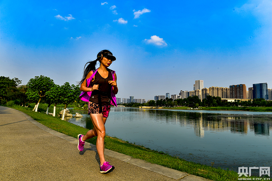 在錦城湖跑步的市民(央廣網(wǎng)發(fā) 成都高新區(qū)供圖)