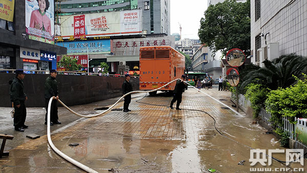 森林消防指戰(zhàn)員對內(nèi)澇區(qū)進行排澇(央廣網(wǎng)發(fā) 通訊員曹軼群 攝)