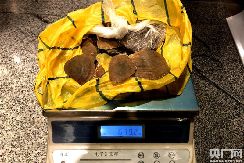 查獲的穿山甲鱗片(央廣網(wǎng)發(fā) 成都海關供圖)
