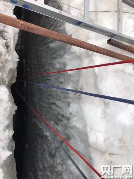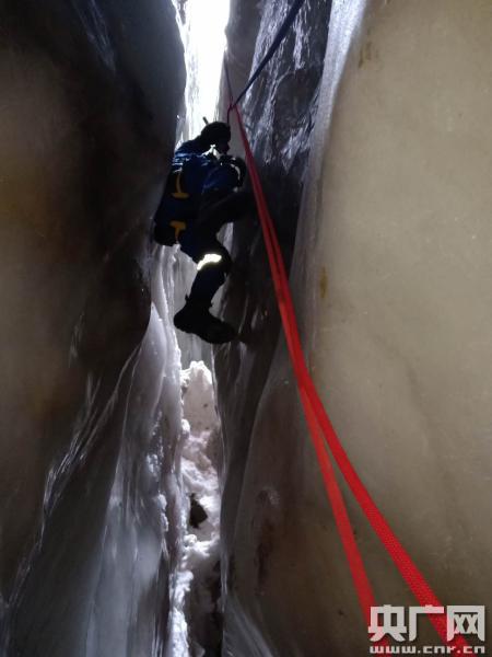 狹窄的冰縫給救援帶來(lái)了不小的困難(央廣網(wǎng)發(fā) 甘肅藍(lán)天救援隊(duì)供圖)