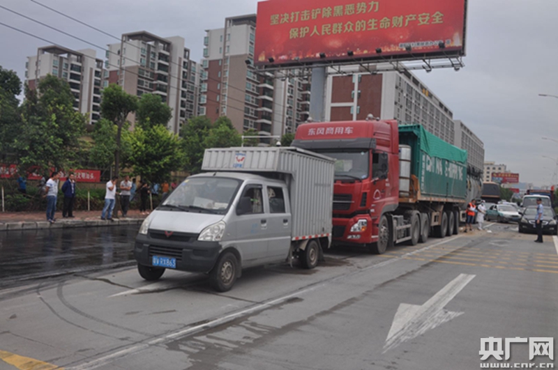 目前,該事故造成一人死亡和三車不同程度損壞,交警部門正在調(diào)查處理中,F(xiàn)場有漏油,請過往車輛減速慢行,注意安全。
