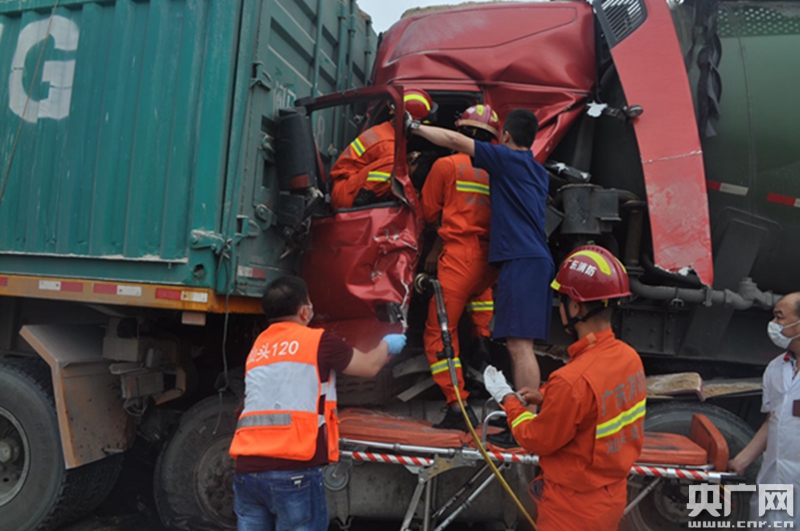 央廣網(wǎng)汕頭5月30日消息(記者鄭澍)記者從汕頭交警部門獲悉,5月30日早上,324國道潮南路段發(fā)生一宗三車碰撞致一人死亡交通事故。經(jīng)初步調(diào)查,6時50分左右,吳某昌(男,37歲,福建省永定縣人)駕駛一輛閩F籍重型半牽引車沿324國道從潮陽往普寧方向行駛,途經(jīng)324國道潮南區(qū)民生醫(yī)院路口時,碰撞到前方正在等紅綠燈的粵D籍重型半掛牽引車和粵V籍輕型廂式貨車,造成吳某昌駕駛的車輛駕駛室嚴重變形。
