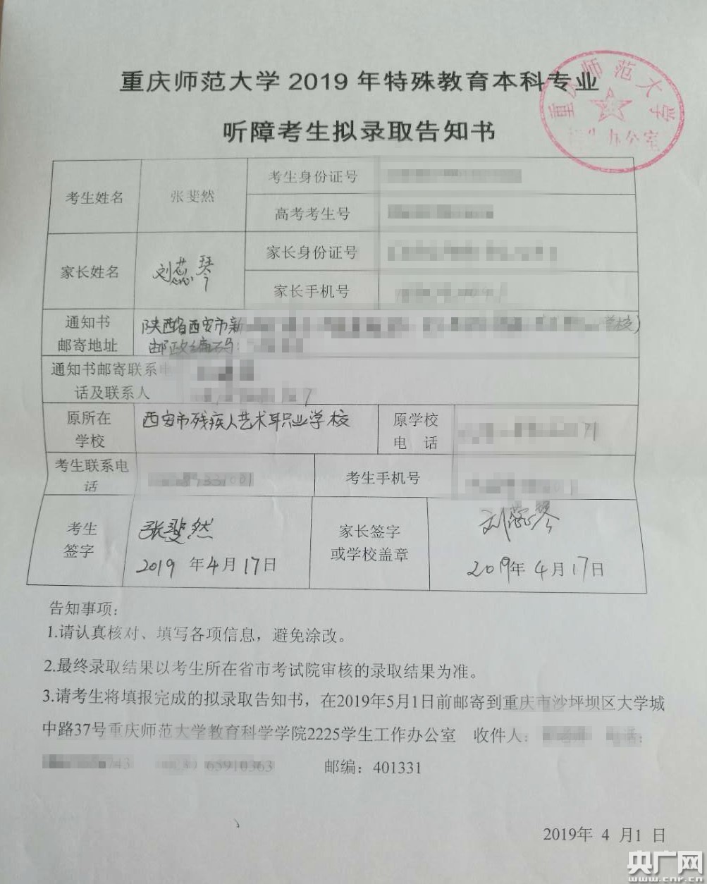 7所大學(xué)發(fā)來錄取通知 堅(jiān)定學(xué)習(xí)特殊教育