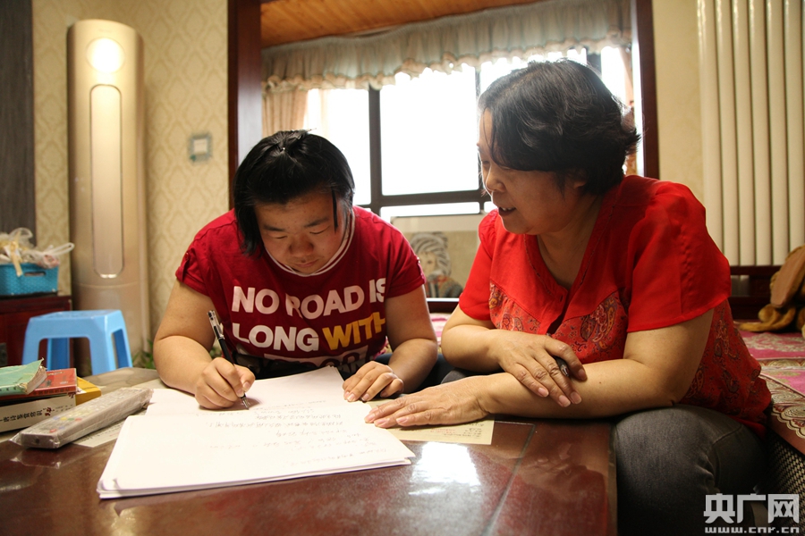 對(duì)于孩子的心愿,劉蕊琴夫婦堅(jiān)定地支持,并竭力當(dāng)好“陪跑員”。劉蕊琴說:“北京、天津、長春的大學(xué)打了好幾次電話向我們發(fā)來了入學(xué)邀請(qǐng),但孩子都放棄了。她很堅(jiān)定將來要服務(wù)特殊人群,這一點(diǎn)我特別感動(dòng)!