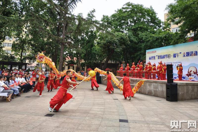 在青島市市北區(qū)延安路街道老年樂園,精彩的端午節(jié)文化展演活動正在上演,在威風的鑼鼓聲中,舞龍、舞龍舟表演讓現(xiàn)場的社區(qū)居民掌聲不斷。今年74歲的連世芳老人告訴記者,通過端午節(jié)系列活動,更加激發(fā)了大家的愛國之情:“感到非常高興,端午節(jié)是紀念偉大的詩人屈原,我們今天在社會主義建設(shè)中更要發(fā)揮愛國主義精神,在今天的社會主義建設(shè)中,我們更要腳踏實地地工作,要使我們的祖國更加繁榮富強!