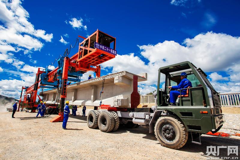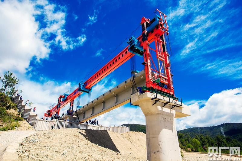 麗香鐵路第一片T梁架設到位。(央廣網發(fā) 陳暢 攝)