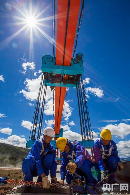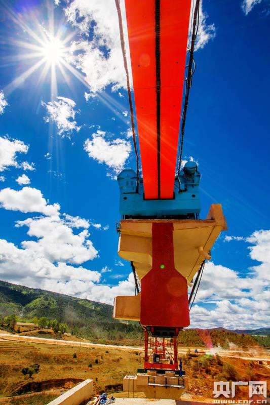6月11日上午,云南麗江至香格里拉鐵路小中甸2號大橋開始T梁架設,這也是麗香鐵路第一片T梁架設,標志著麗香鐵路建設取得重要進展。(央廣網發(fā) 陳暢 攝)