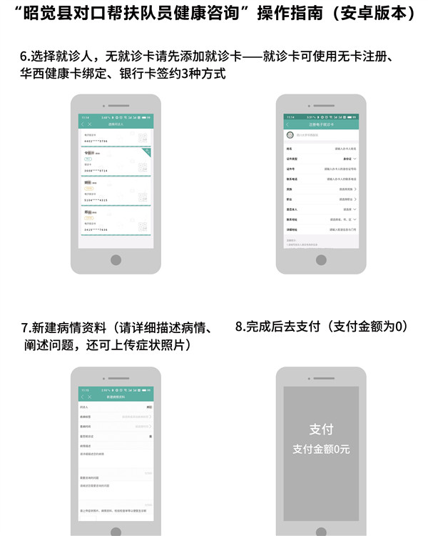 央廣網(wǎng)昭覺(jué)6月12日消息(記者樊承志 見(jiàn)習(xí)記者王曼)四川大學(xué)華西醫(yī)院利用現(xiàn)有的在線診療和健康咨詢(xún)平臺(tái)“華醫(yī)通”,為扶貧隊(duì)員開(kāi)辟專(zhuān)門(mén)通道,提供免費(fèi)的在線健康咨詢(xún)服務(wù)。這項(xiàng)在涼山彝族自治州昭覺(jué)縣試運(yùn)行的新模式,冀望通過(guò)“一對(duì)一”在線圖文、語(yǔ)音和視頻交流方式提供身心健康的咨詢(xún)服務(wù),受到當(dāng)?shù)胤鲐毟刹康臍g迎。