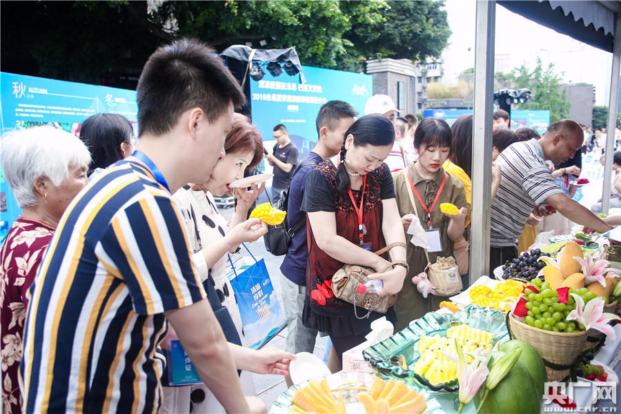 游客品嘗米易水果(央廣網(wǎng)發(fā) 主辦方供圖)