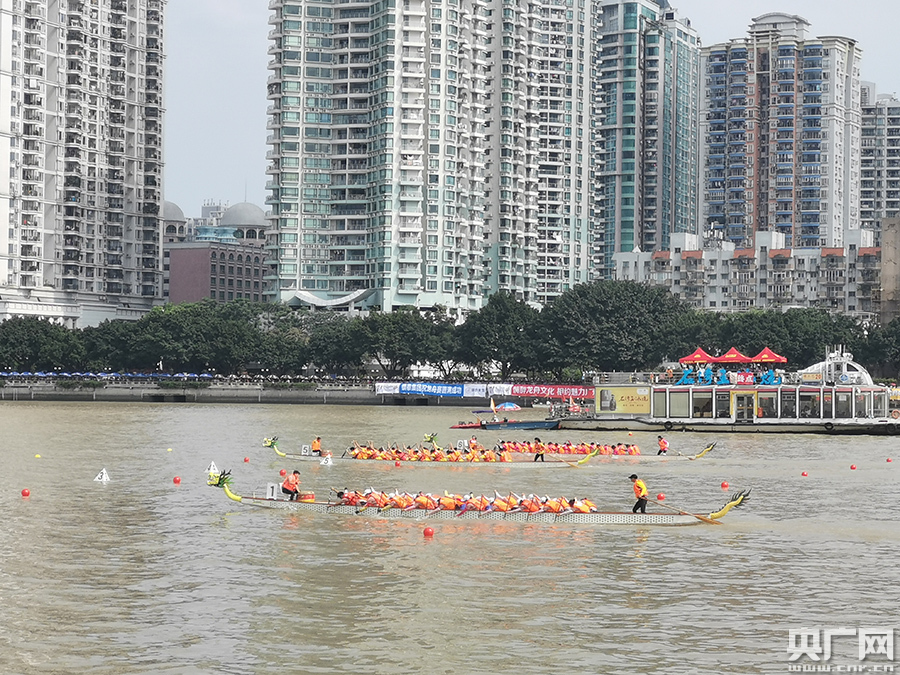 賽事在廣州中大北門廣場至廣州大橋之間的珠江河段舉行(央廣網(wǎng)記者 王思元 攝)