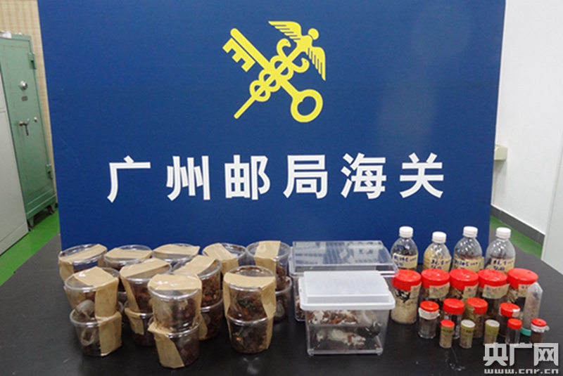 6月9日,廣州海關(guān)又在申報品名為“文具樣品”、來自中國臺灣的郵包內(nèi)再次查獲使用透明塑料瓶包裝的甲蟲成蟲。上述查獲的3批活體甲蟲成蟲共計41頭。