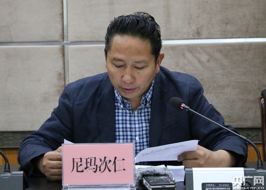 區(qū)體育局局長尼瑪次仁正在會(huì)上發(fā)言