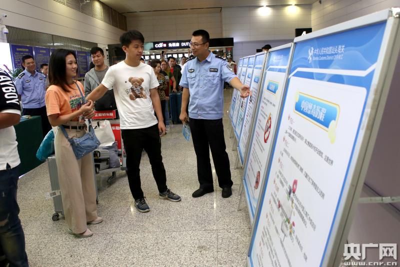 在人流如織的潮汕機場進出境大廳,汕頭海關(guān)關(guān)警員和地方公安禁毒支隊的禁毒宣傳員們手拿禁毒宣傳品給旅客送上一份“綠色無毒、健康人生”的溫馨關(guān)愛,教育引導(dǎo)廣大旅客充分認識毒品的危害,提高識毒、拒毒、防毒的意識和能力,活動現(xiàn)場向旅客發(fā)放了禁毒宣傳手冊400余份。