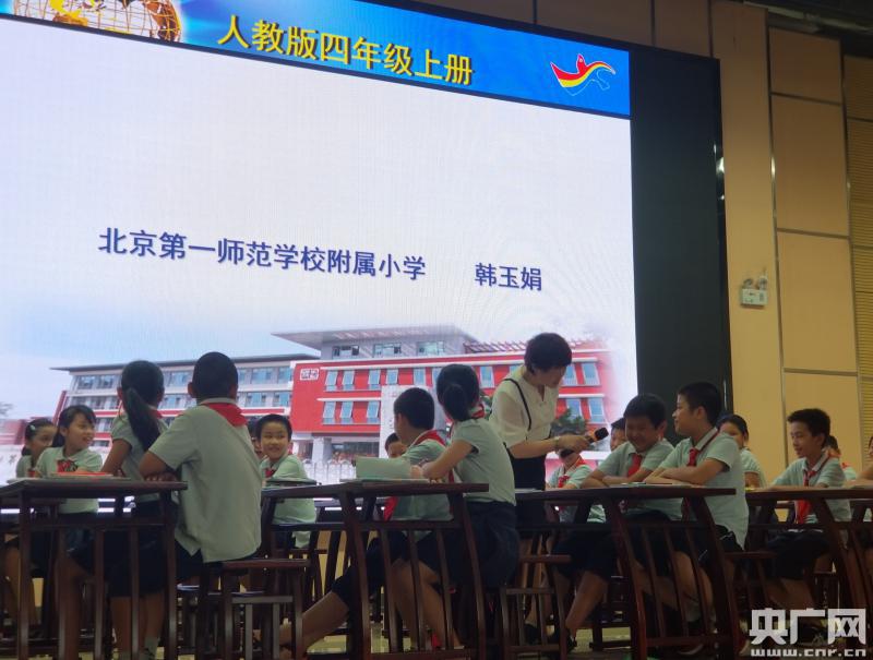 北京市特級教師、北京一師附小副校長韓玉娟在佛山新城一小上示范課。(央廣網(wǎng)發(fā) 主辦方供圖)