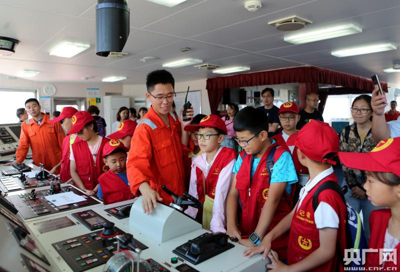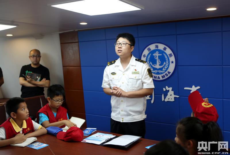 海事工作人員向孩子們介紹海事執(zhí)法船的相關(guān)工作(央廣網(wǎng)發(fā) 劉世方 攝)