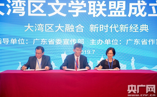 粵港澳三地代表簽下粵港澳大灣區(qū)文學(xué)聯(lián)盟。(央廣網(wǎng)發(fā) 主辦方供圖)