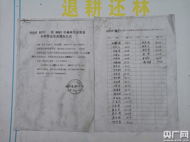 村民領取森林生態(tài)效益補償資金的賬單(蔣琦 攝)