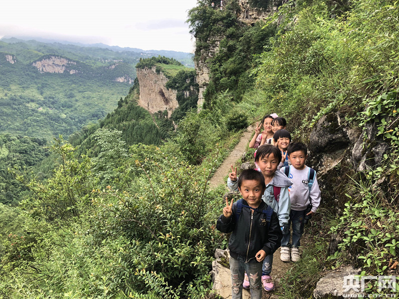 “每天早晚孩子們都在我家房前的坡坡上經過,到村里的小學上課。他們兩三歲就在這山崖上耍,做父母的哪有不擔心的!痹S明松感嘆。