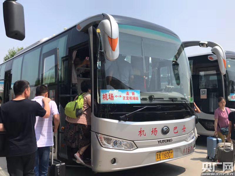 乘坐免費(fèi)擺渡車可從高鐵正定機(jī)場站直達(dá)機(jī)場,單程運(yùn)行時(shí)間約5分鐘(央廣網(wǎng)見習(xí)記者 閆金楓 攝)