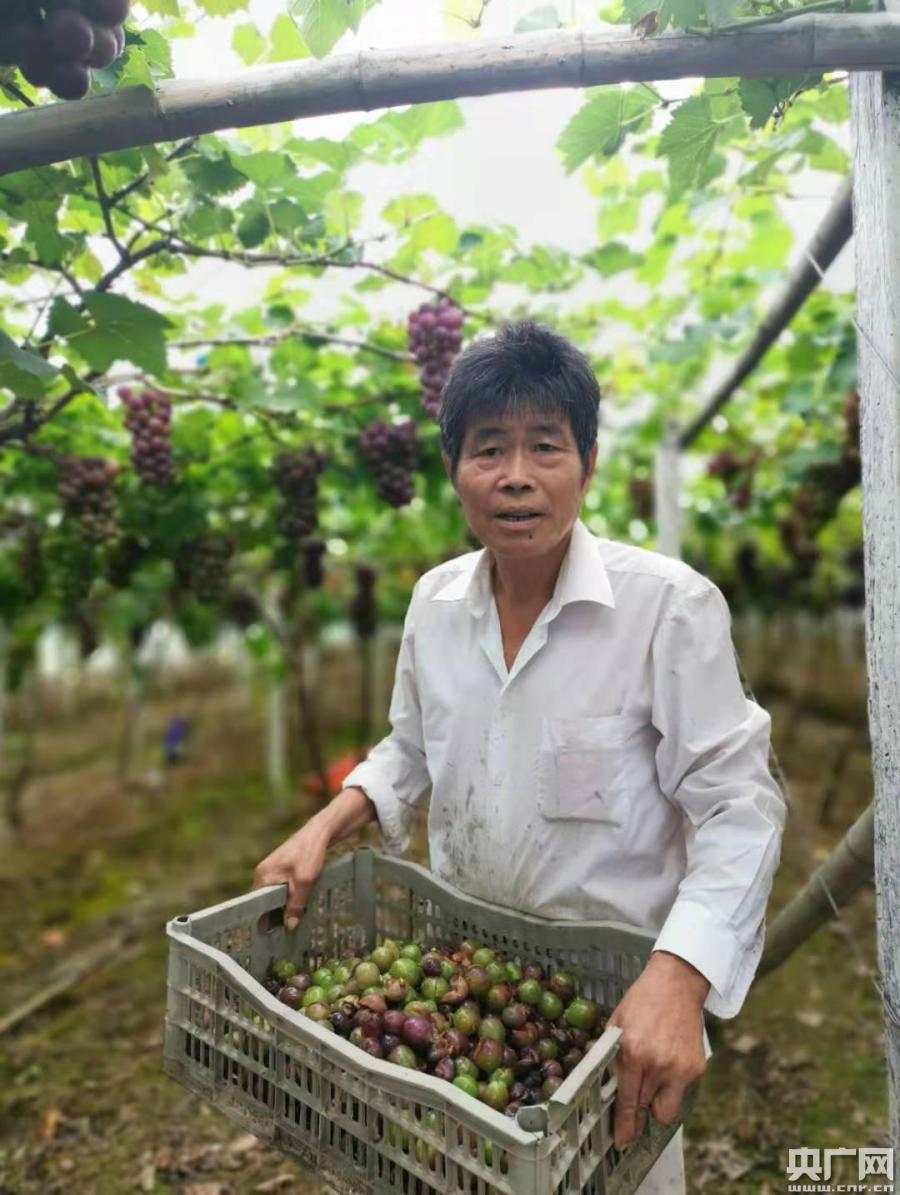 葡萄種植戶整理出的裂果(央廣網(wǎng)記者 曹美麗 攝)