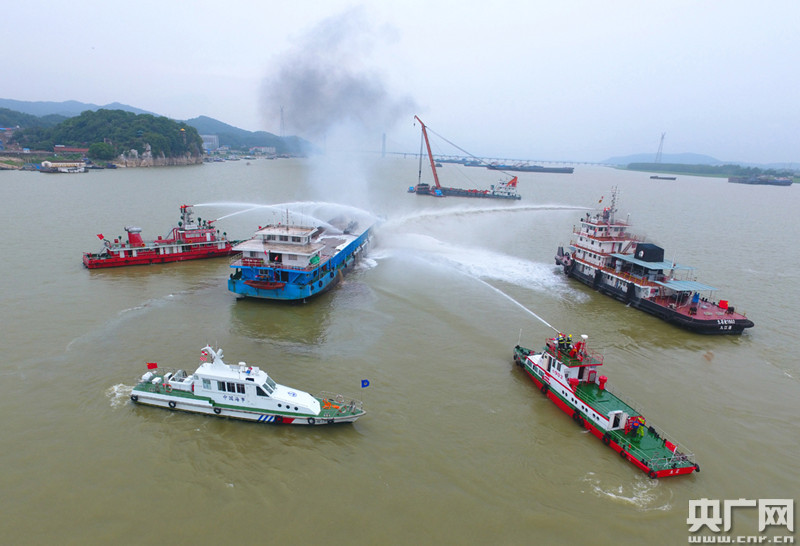 海事部門組織開展滅火救援。(央廣網發(fā) 長江海事局供圖)