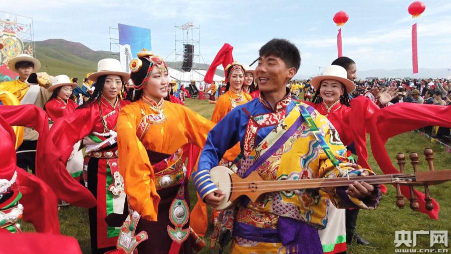 身穿民族服飾的藏族民眾帶來快閃表演(央廣網(wǎng)記者 劉澤耕 攝)