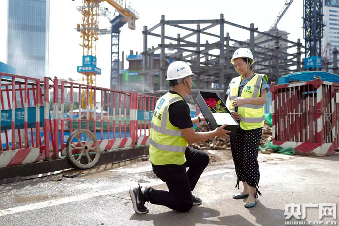 塔吊司機(jī)成忠富今年31歲,塔吊指揮何丹今年26歲,他們是一對(duì)農(nóng)民工夫妻,常年在外打工!皬臎](méi)過(guò)過(guò)情人節(jié),這還是第一次,老婆和我在工地上吃苦卻沒(méi)給過(guò)老婆什么,感謝項(xiàng)目為我們搭建這難得的機(jī)會(huì),老婆,我愛(ài)你。”塔吊司機(jī)成忠富激動(dòng)的向妻子表白著,妻子何丹飽含深情地笑道,“苦不苦的無(wú)所謂,只要天天能在一起就滿足了,老公,你辛苦了!。