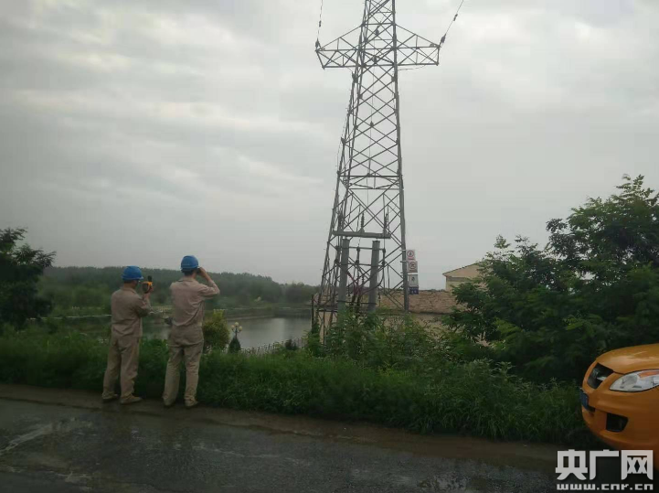 國網(wǎng)天津寧河公司員工保障雨天設備安全穩(wěn)定運行。 (央廣網(wǎng)發(fā) 國網(wǎng)天津電力供圖)