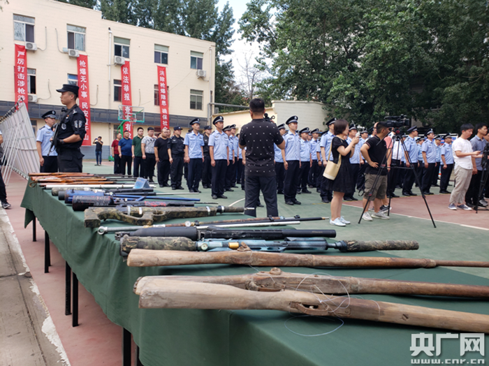 現(xiàn)場(chǎng)展示的部分被收繳槍支(央廣網(wǎng)見習(xí)記者 張說地 攝)