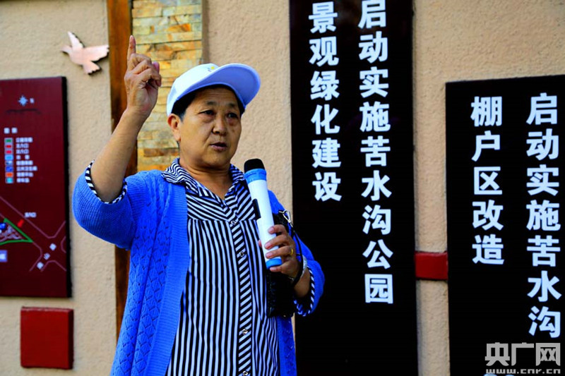 原大園山居委會主任杜曉紅向大家講述苦水溝歷史變遷(央廣網(wǎng)記者 張雷 攝)