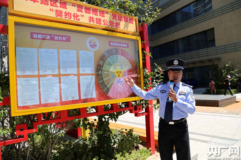 西寧火車站派出所所長葉占軍向市民代表介紹夏都樞紐黨建聯(lián)盟工作方法(央廣網(wǎng)記者 張雷 攝)
