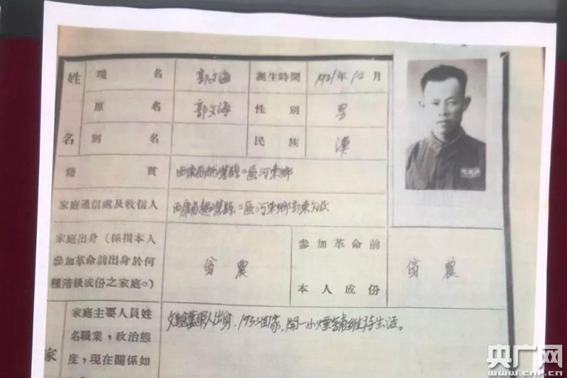 郭文海的干部履歷表(央廣網(wǎng)發(fā) 虎俊隆提供)
