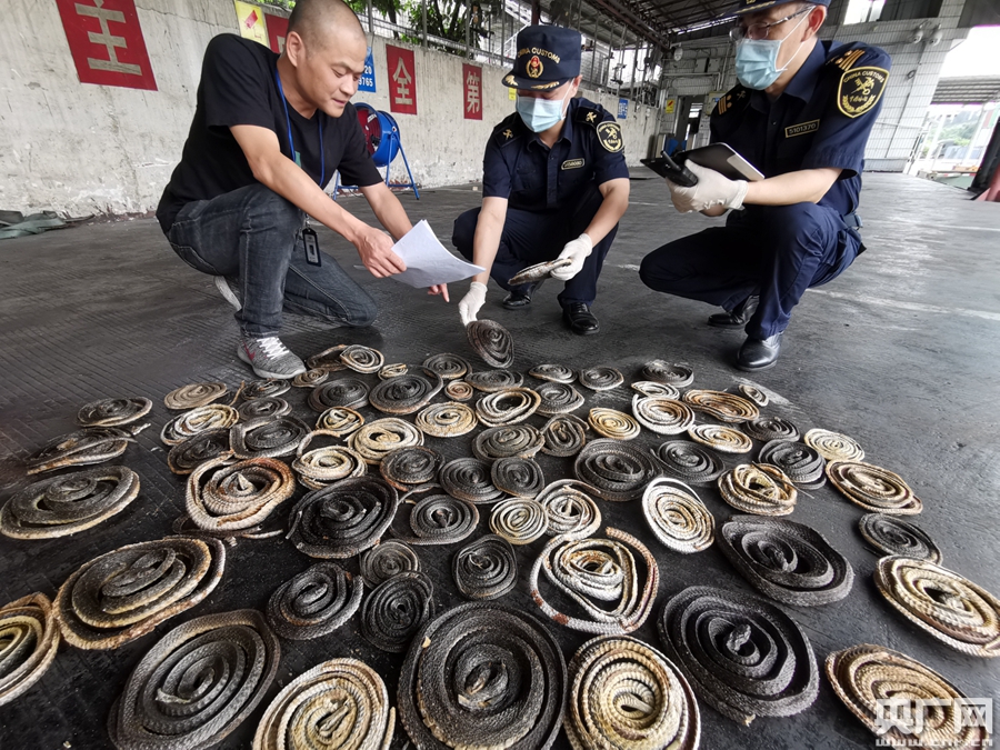 央廣網(wǎng)廣州9月9日消息(記者鄭澍 通訊員關(guān)悅)據(jù)廣州海關(guān)9月6日消息,近期,廣州海關(guān)在一批進(jìn)口干制動(dòng)物中查獲混入其中的滑鼠蛇干、南洋眼鏡蛇干等瀕危物種制品共386公斤。
