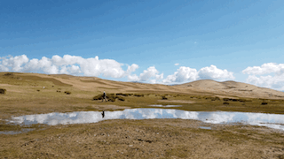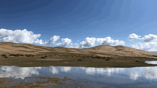 移步景區(qū)內(nèi),棧道、公廁、觀景平臺等設(shè)施不見蹤影,只見到保護區(qū)的監(jiān)測人員正在對遷徙期的水鳥進行統(tǒng)計和監(jiān)測。來到沙島景區(qū)的核心區(qū),記者腳下松軟金黃的沙丘在高原上綠意盎然。野花野草在風中搖曳,和煦的陽光泛在湖面上,閃著璀璨的粼粼波光,湖面上倒映著藍天碧云的圖景。