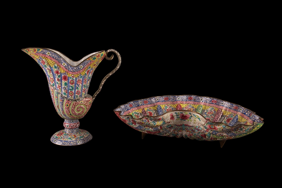 清乾隆銅胎畫(huà)琺瑯花卉紋須盤(pán)及水澆(央廣網(wǎng)發(fā) 廣東省博物館供圖)