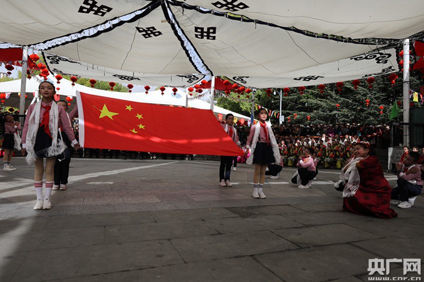 西藏各族群眾高唱愛國歌禮贊新中國(央廣記者羅布次仁 攝)