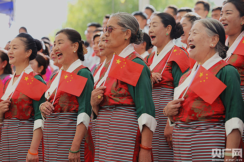 西藏各族群眾高唱愛國歌 禮贊新中國(央廣記者羅布次仁 攝)
