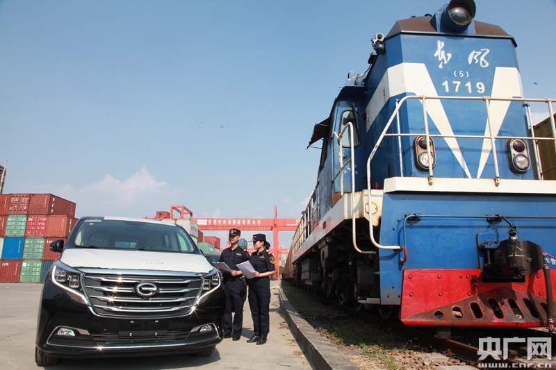 “廣東造”汽車首次搭乘石龍中歐班列出口(央廣網(wǎng)發(fā) 海關(guān)供圖)