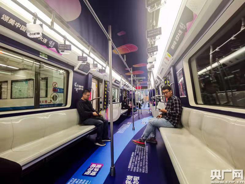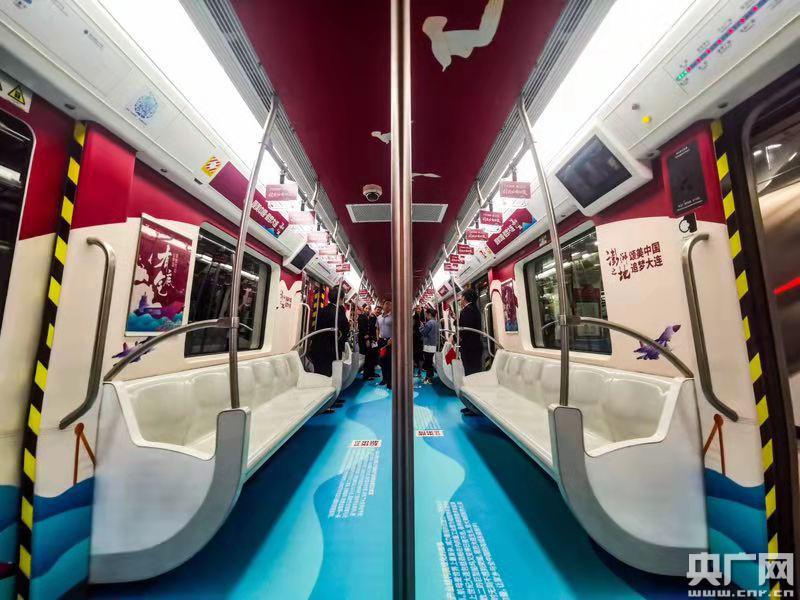 央廣網(wǎng)大連9月27日消息(記者賈鐵生)9月27日,“頌美中國 追夢大連”主題列車在大連地鐵正式上線。在車廂里,不僅可以看到中國各地的地標(biāo)建筑、中國第一顆衛(wèi)星“東方紅”、祖國人民生活的變遷,還可以看到大連國際會(huì)議中心、中山公園、跨海大橋,以及在大連這座文明、浪漫元素。置身其中,仿佛來到“移動(dòng)畫廊”,能感受到70年來,新中國發(fā)生的天翻地覆的變化,以及大連的不斷發(fā)展。