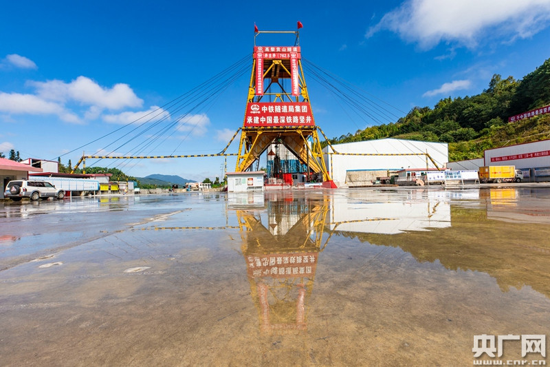 大瑞鐵路高黎貢山隧道1號豎井井架外景(央廣網(wǎng)發(fā) 圖片由中國鐵路昆明局集團提供)