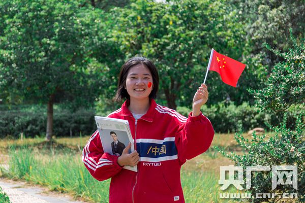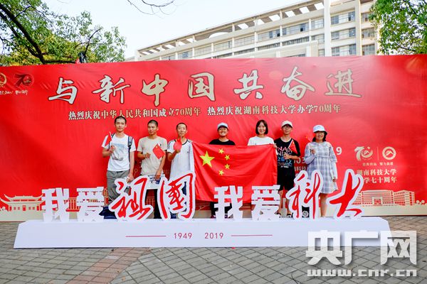 湖南科大學(xué)生與國(guó)旗合照 為新中國(guó)慶生(央廣網(wǎng)發(fā) 盧權(quán)隆 董思良供圖)