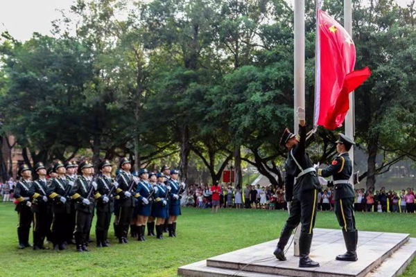 中山大學(xué)師生升國(guó)旗唱國(guó)歌致敬偉大祖國(guó)(央廣網(wǎng)發(fā) 校方供圖)