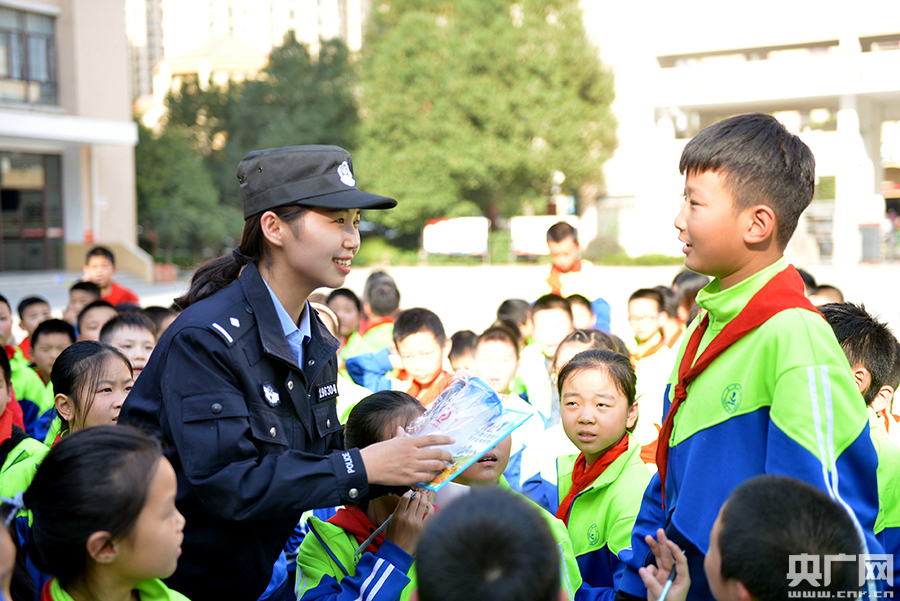 孩子們認(rèn)真回答民警的提問(央廣網(wǎng)發(fā) 襄陽鐵路公安局供圖)