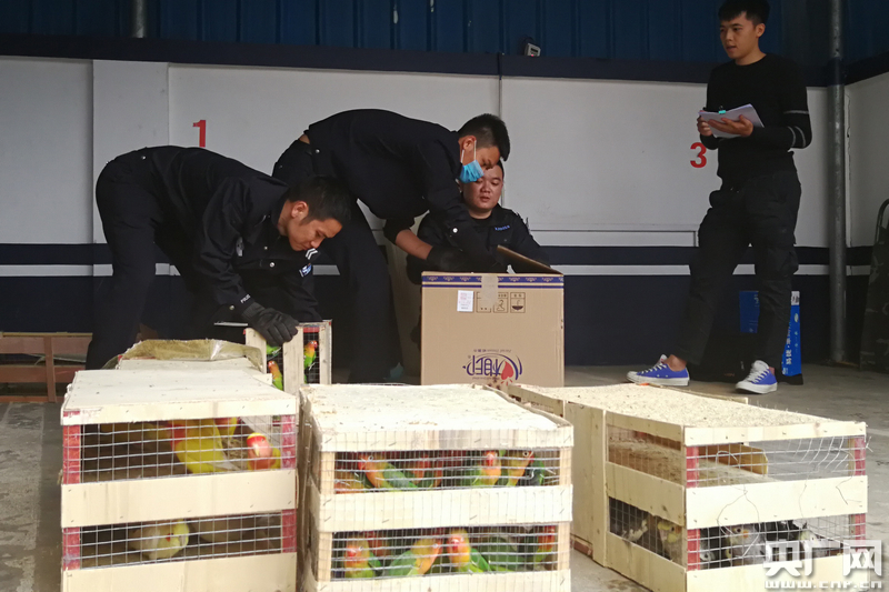 經(jīng)清點,木箱中共搜出鸚鵡436只,除13只死亡外,其余423只均為活體。