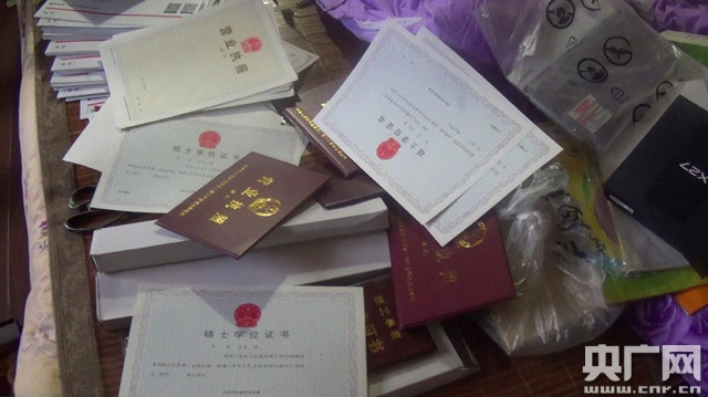 在抓捕現(xiàn)場,民警看著琳瑯滿目的假證驚訝不已:現(xiàn)場的假證和假章可謂是一應(yīng)俱全——既有畢業(yè)證、學(xué)位證等學(xué)歷證明,又有駕照、行駛證等駕駛專用證件,還有出生證、戶口本、結(jié)婚證、離婚證等身份證明,甚至還有營業(yè)執(zhí)照、公司印章等公司證明。