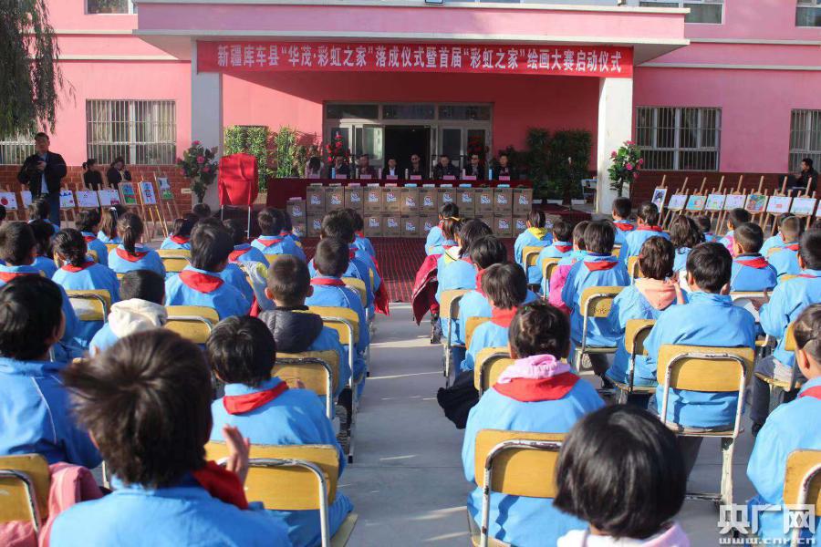央廣網(wǎng)寧波11月11日消息(記者曹美麗 通訊員李佳赟)從浙江到新疆,從江南疏雨到天山戈壁,相隔千里,卻因一道“彩虹橋”而“天涯若比鄰”。經(jīng)過(guò)170余個(gè)小時(shí)、4000多公里的跋涉,11月10日,第十所華茂“彩虹之家”在新疆庫(kù)車縣烏尊色根蘇蓋特小學(xué)揭牌落成。此次揭牌,可以說(shuō)是古老的“陸上絲綢之路”與“海上絲綢之路”的溫暖“邂逅”。