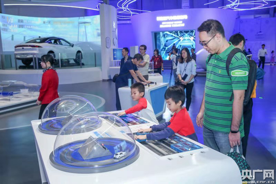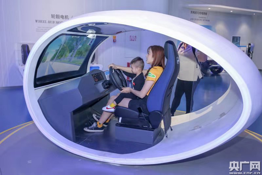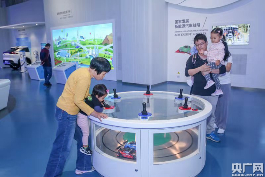 全國首個“低碳&新能源汽車”科普體驗館正式開放。圖為觀眾參與互動體驗(央廣網(wǎng)發(fā) 通訊員供圖)